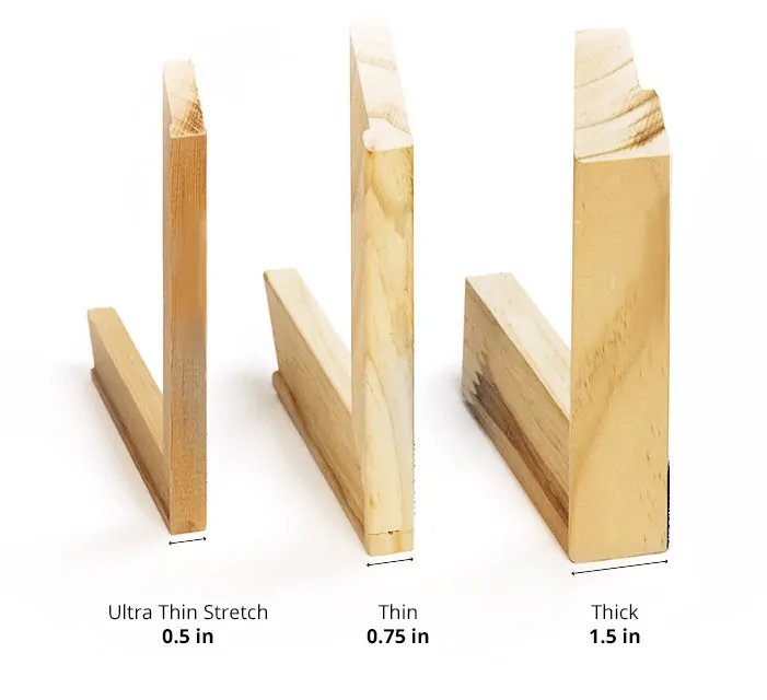 Considering a frame? Choose our Thin Wrap option. It’s designed to fit seamlessly within standard frames and creates a more traditional look, without extending far from the wall.